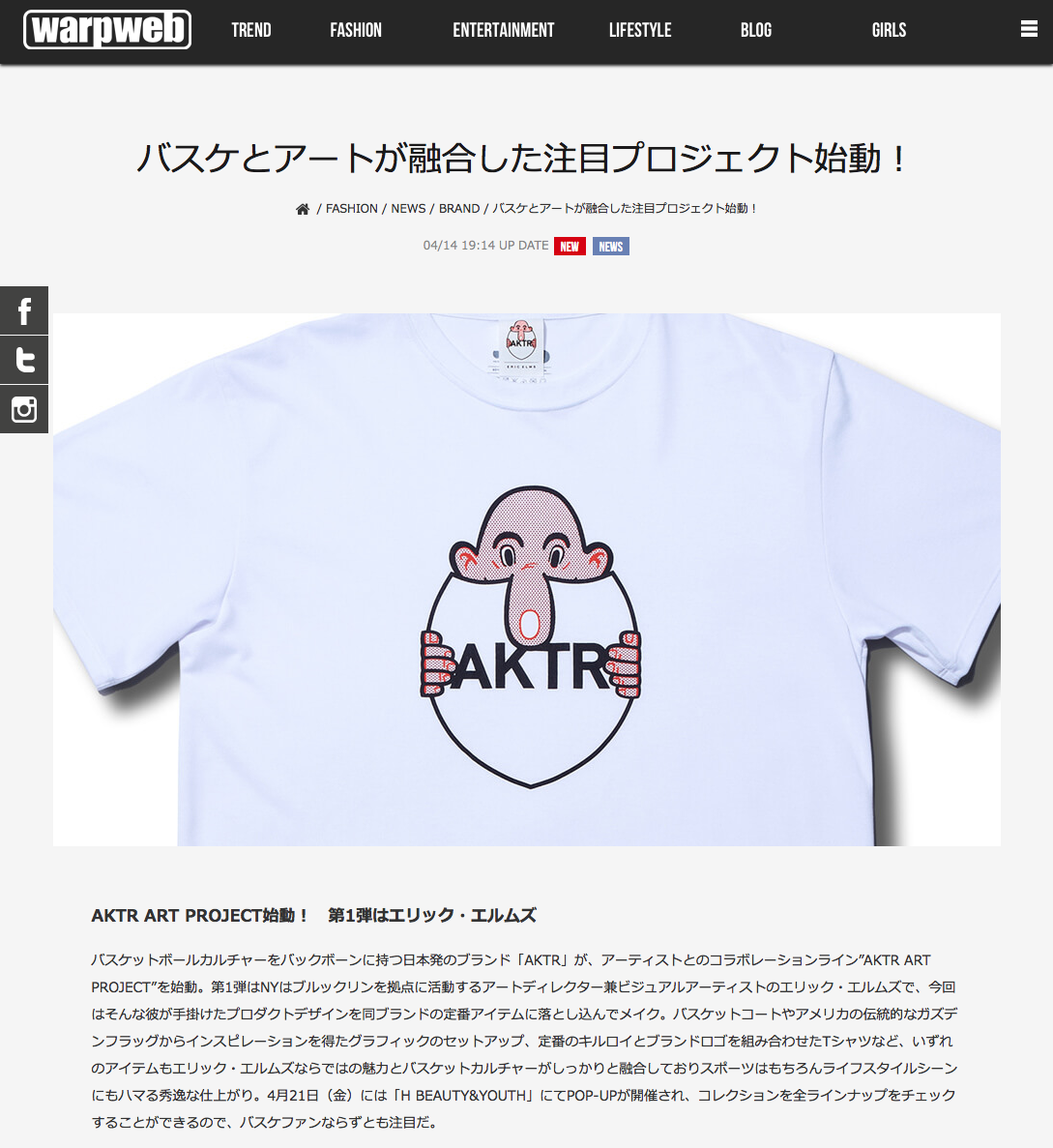 warpweb にERIC ELMS x AKTRの商品が掲載されました。